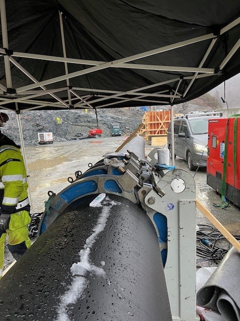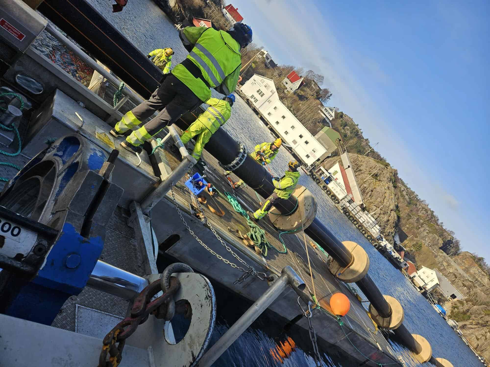 Ved hovedkontoret på Holmefjord sveiser vi også sjøledninger direkte på sjø, klart for sjøslep.